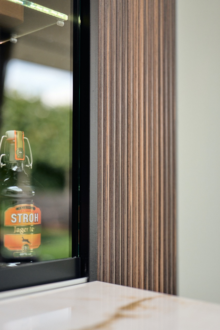 Deze aanbouw is een verrijking van de hele woning. Een heerlijke tuinkamer die overloopt in de tuin. Van alle gemakken voorzien, voor feestjes of rustige avonden met de haard aan.