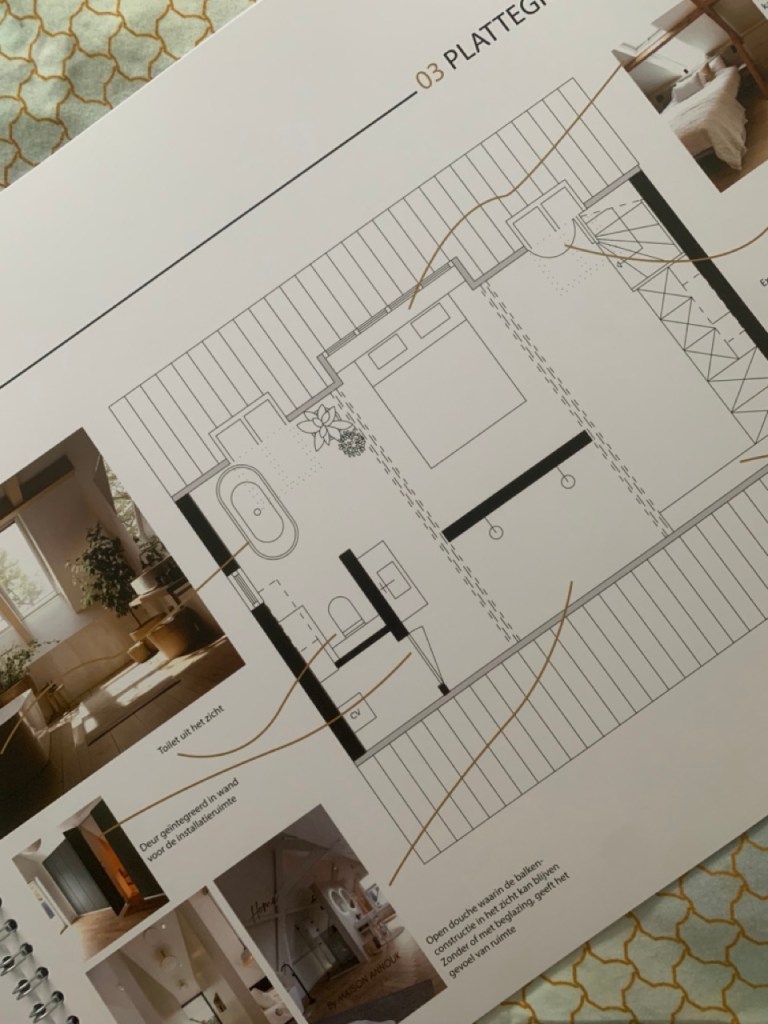 De ontwerpplannen voor deze prachtige ruimte zijn in ontwikkeling. Met de mooie balkenconstructie in het zicht en een goede indeling voor slapen, douchen en kledingruimte, kan deze bewoner straks optimaal genieten.